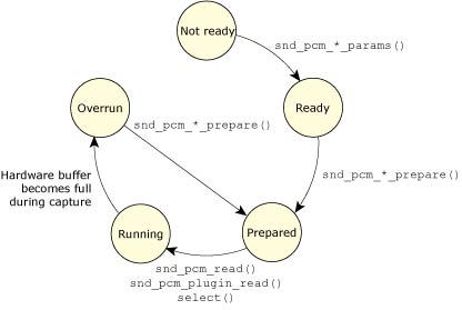 This step and the SND_PCM_STATUS_PREPARED state may seem unnecessary, but they're required to correctly handle underrun conditions when playing back, and overrun conditions when capturing. For more information, see "If the PCM subchannel stops during playback" and "If the PCM subchannel stops during capture," later in this chapter.
