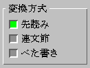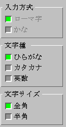 オプション・パネルのチェック・ボックスをクリックして、入力方式、文字種、全角・半角の切り替えができます。